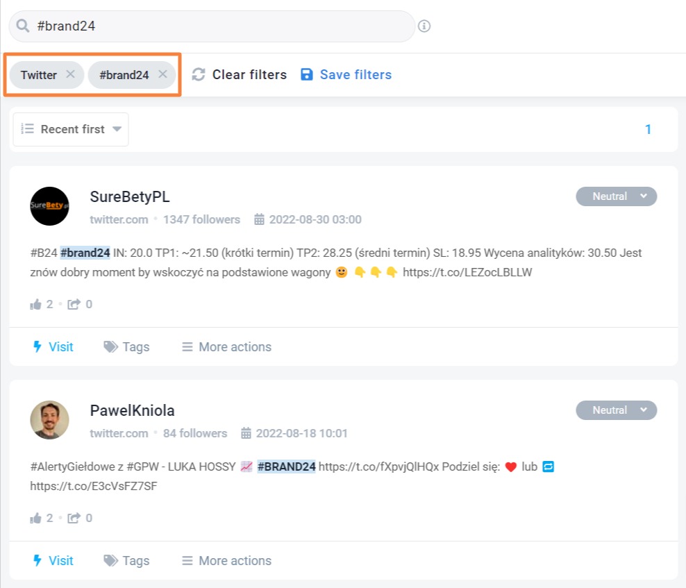 Use Brand24 to track hashtags across Twitter and discover their performance.
