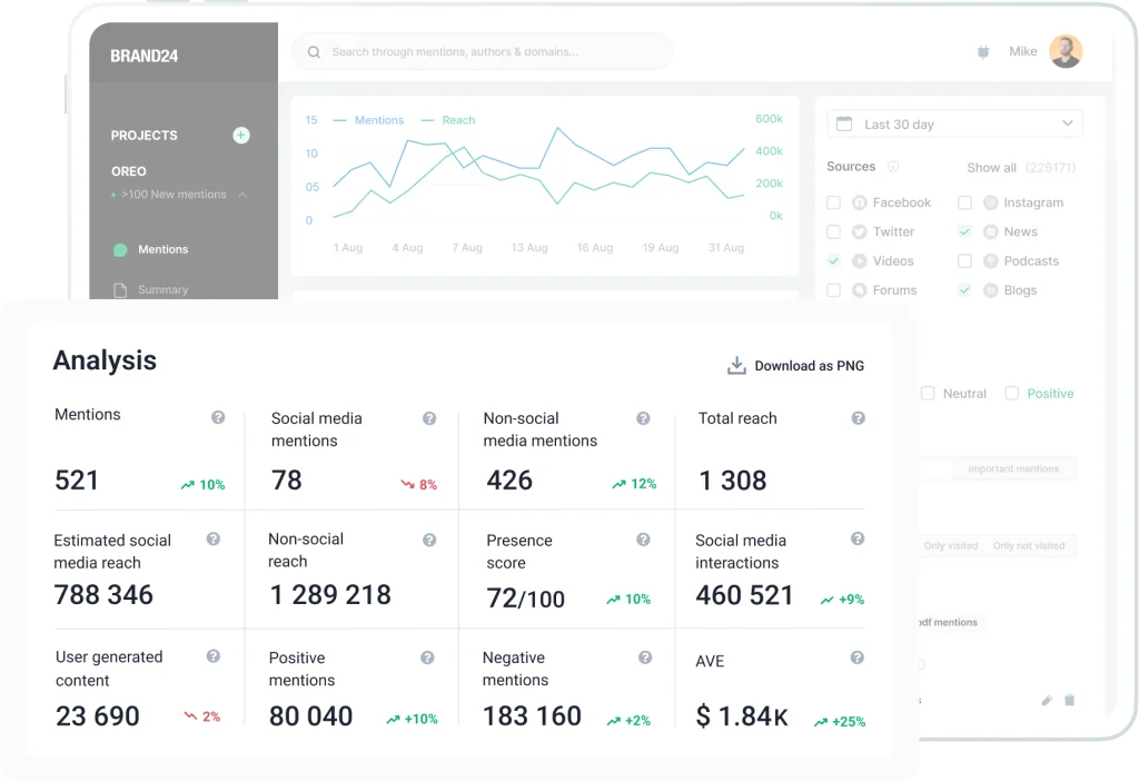 Keeping track of every trend within your brand industry may be a staggering task. Well, not with Brand24 – set up a new project on keywords related to your niche to follow new trends on the market.