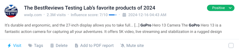 I generally tracked the brand name in GoPro’s case, so my keyword was “GoPro.” However, I wanted to focus on a specific product – GoPro Hero 13, so I filtered my results using this phrase: