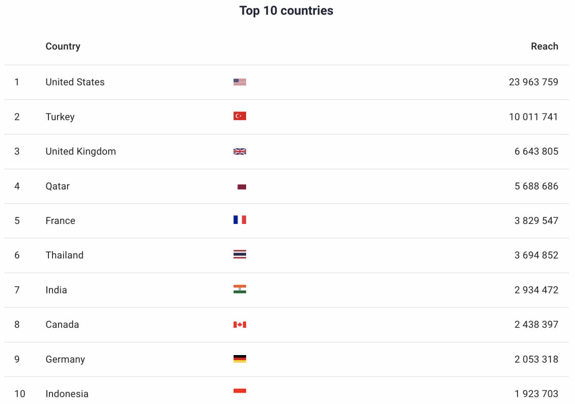 Below, you can see the example of social media reach for Qatar Airways in a period of 30 days.